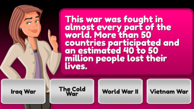 In this fun trivia quiz we're going to ask questions like "What is the name of the rock at the point where the Mayflower arrived in the USA?" and "This war was fought in almost every part of the world. More than 50 countries partici..".