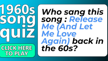 4/10 is what people on average are scoring in this 1960s Songs quiz so far. Are you ready to answer questions like "Who sang this song : "Delilah" back in the 60s?" and "Who sang this song : "Release Me (And Let Me Love Again)" back in the 60s?"