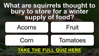 Look forward to questions like "What are squirrels thought to bury to store for a winter supply of food?" and "What is the up and down movement of ocean water caused by wind called?"