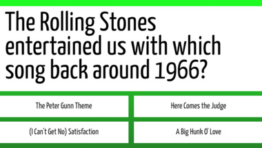 If you can answer "The Rolling Stones entertained us with which song back around 1966?" and maybe even "Sonny and Cher entertained us with which song back around 1966?" there is a good chance that you're going to beat the average score of 5/10 in this 1960s Songs quiz