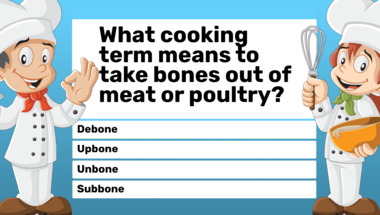 7/10 is what people on average are scoring in this trivia quiz so far. Are you ready to answer questions like "Red Delicious and Golden Delicious are varieties of which fruit?" and "What cooking term means to take bones out of meat or poultry?"
