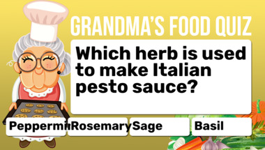Look forward to questions like "Which herb is used to make Italian pesto sauce?" and "What nuts are used in a Waldorf salad?"