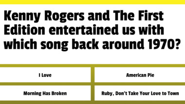In this fun trivia quiz we're going to ask questions like "Tom Jones entertained us with which song back around 1972?" and "Kenny Rogers and The First Edition entertained us with which song back around 1970?".