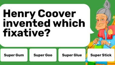 6/10 is what people on average are scoring in this trivia quiz so far. Are you ready to answer questions like "Henry Coover invented which fixative?" and "What is 25% of 60?"