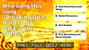 5/10 is the score to beat in this trivia quiz to put yourself over the average quiz taker. But you're probably going to be able to answer questions "Who sang this song : "Breaking Up Is Hard to Do" back in the 1970s?" and "Who sang this song : "Burning Love" back in the 1970s?" easy!