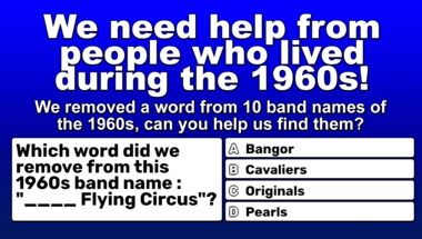 Can you beat the average score of 6/10 in this quite fun 1960s bands with a missing word quiz?
